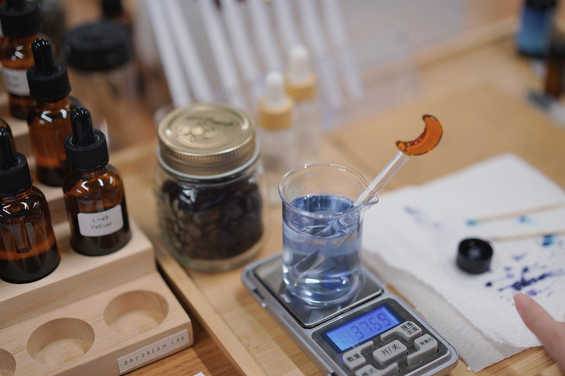 学习基底制作和调香溶液制作知识,并完成制作多种香氛产品:香水,滚珠香水,空间香氛喷雾,无火香氛,固体香膏