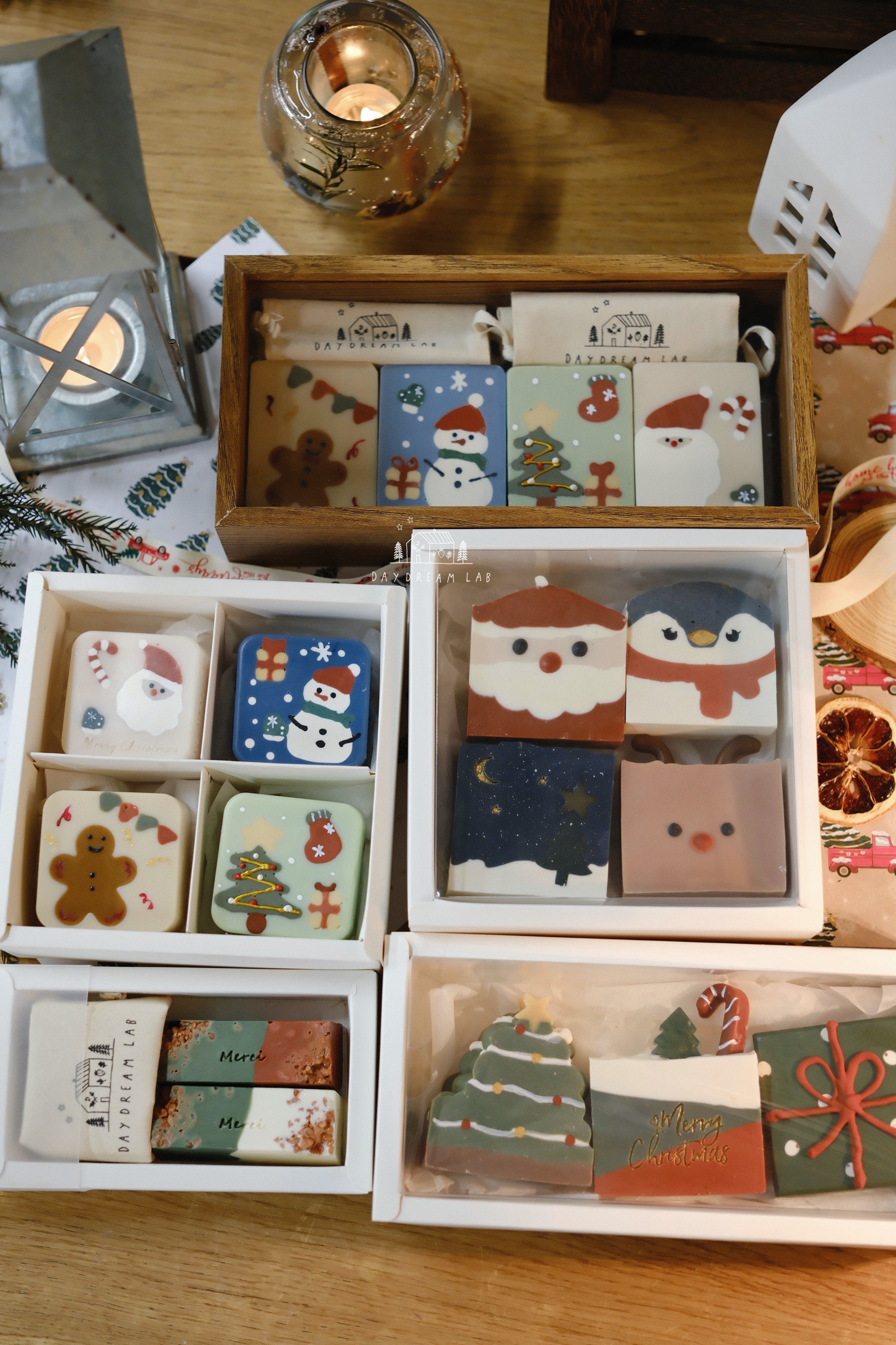 这款圣诞冷制手工皂礼盒集结了圣诞老人、驯鹿、圣诞树、星夜及可爱小企鹅,每个图案都展现了节日的欢乐氛围。每块皂都由精心制作,为您的圣诞洗护增添节日气氛