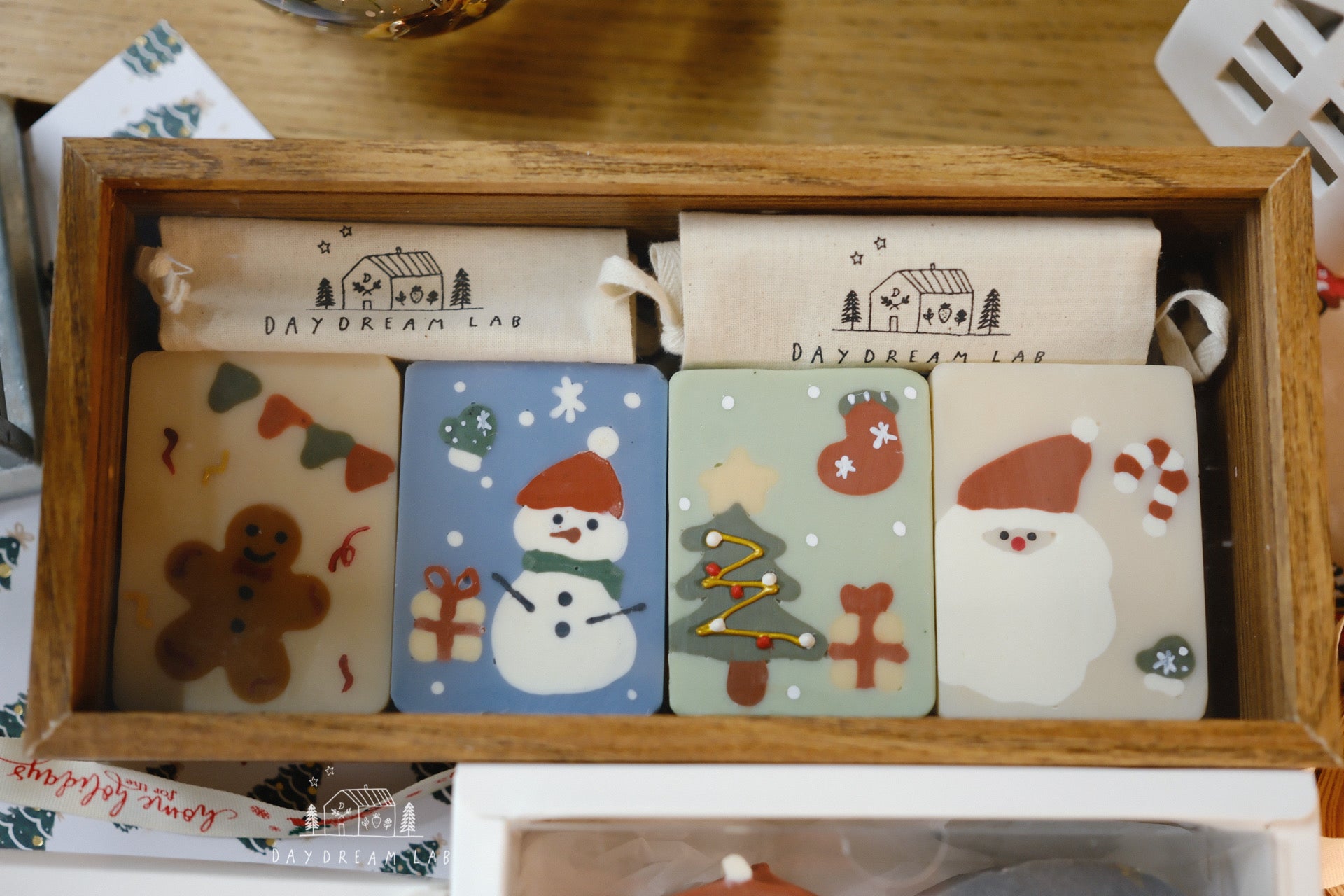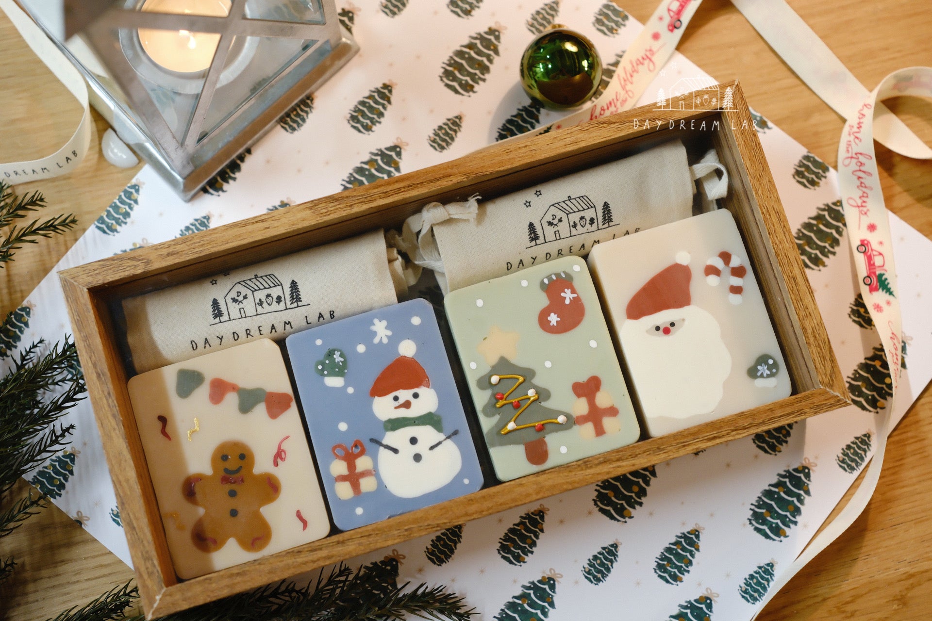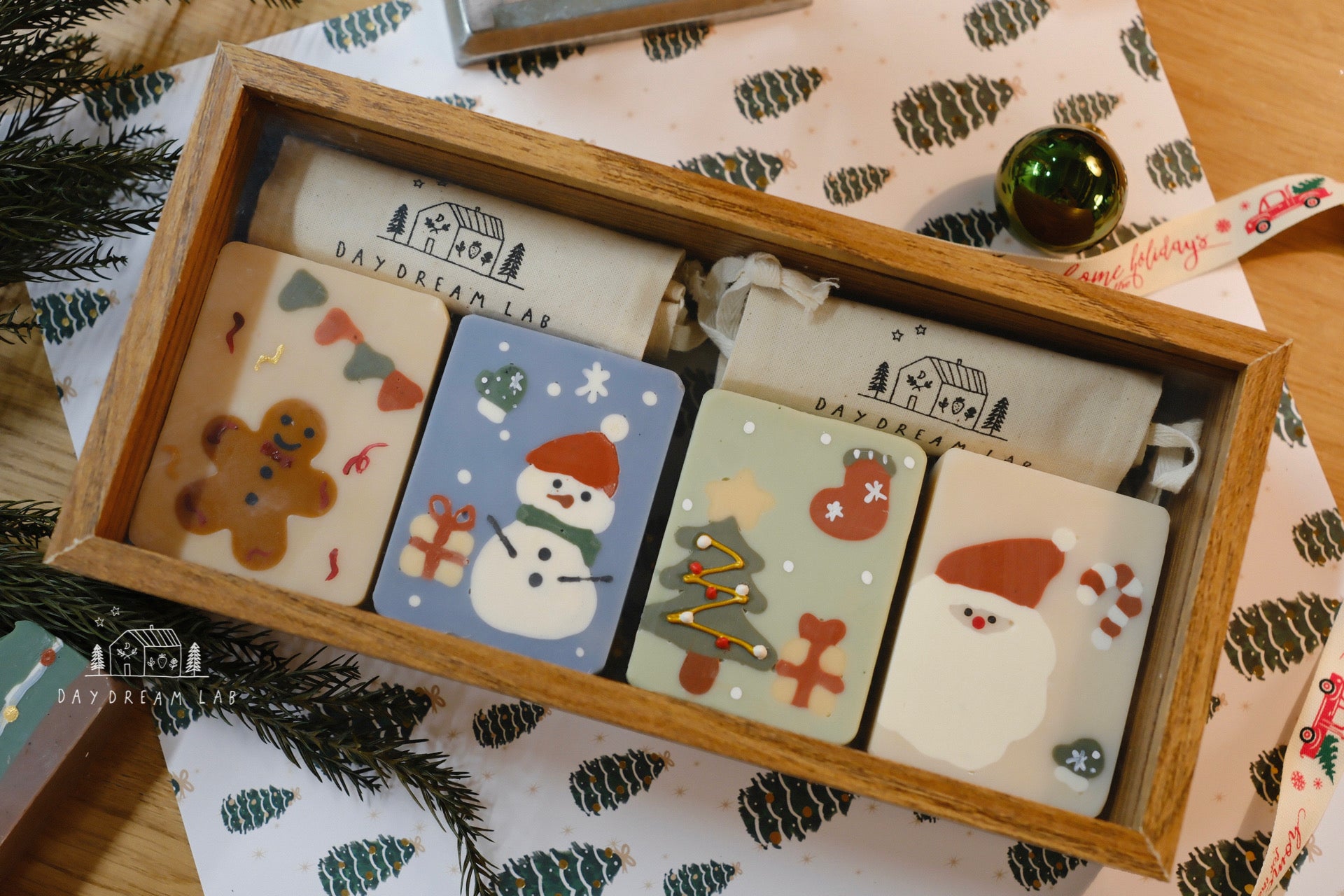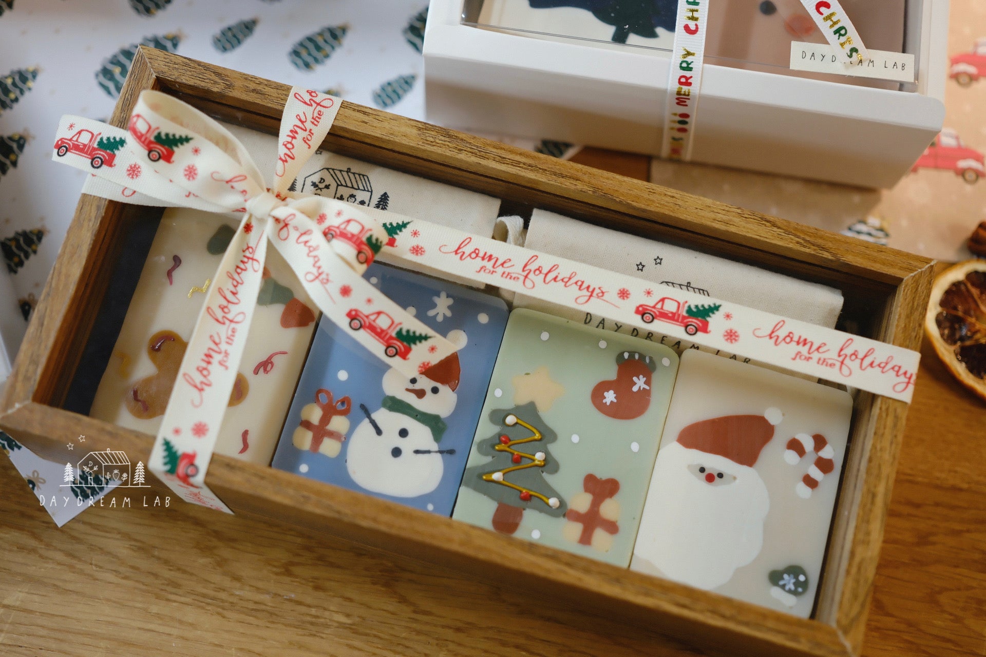 Christmas Cold Process Soap PREMIUM Gift Box - Hand drawn Classic Christmas Soaps (large rectangle one)