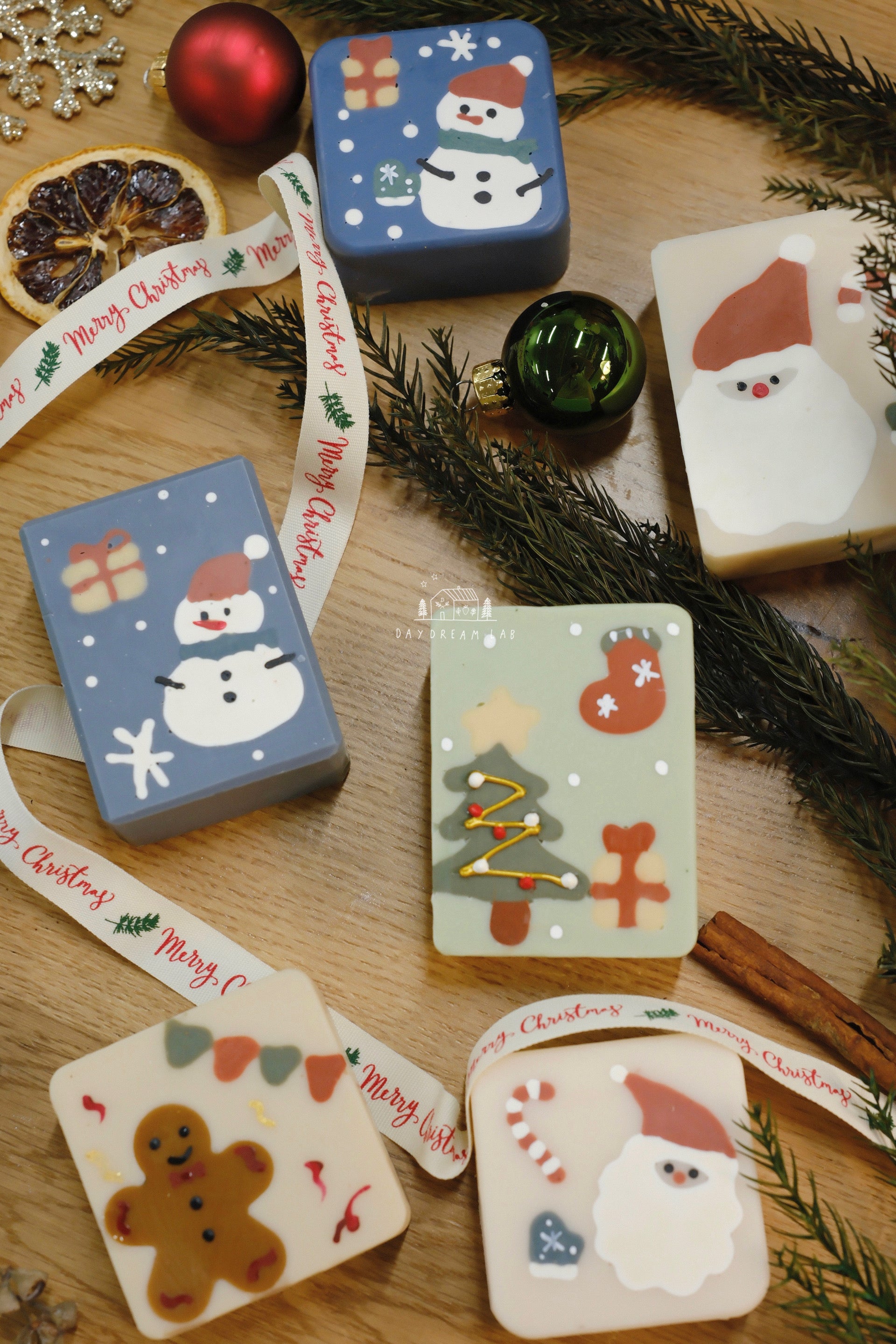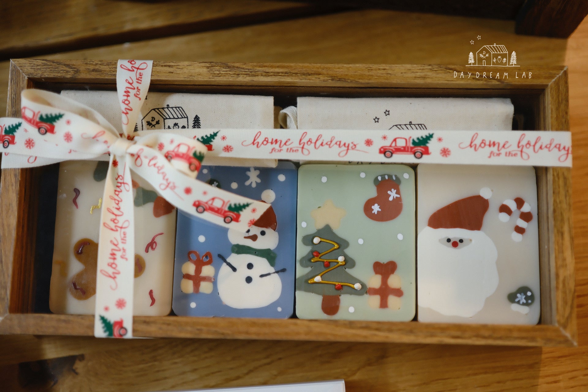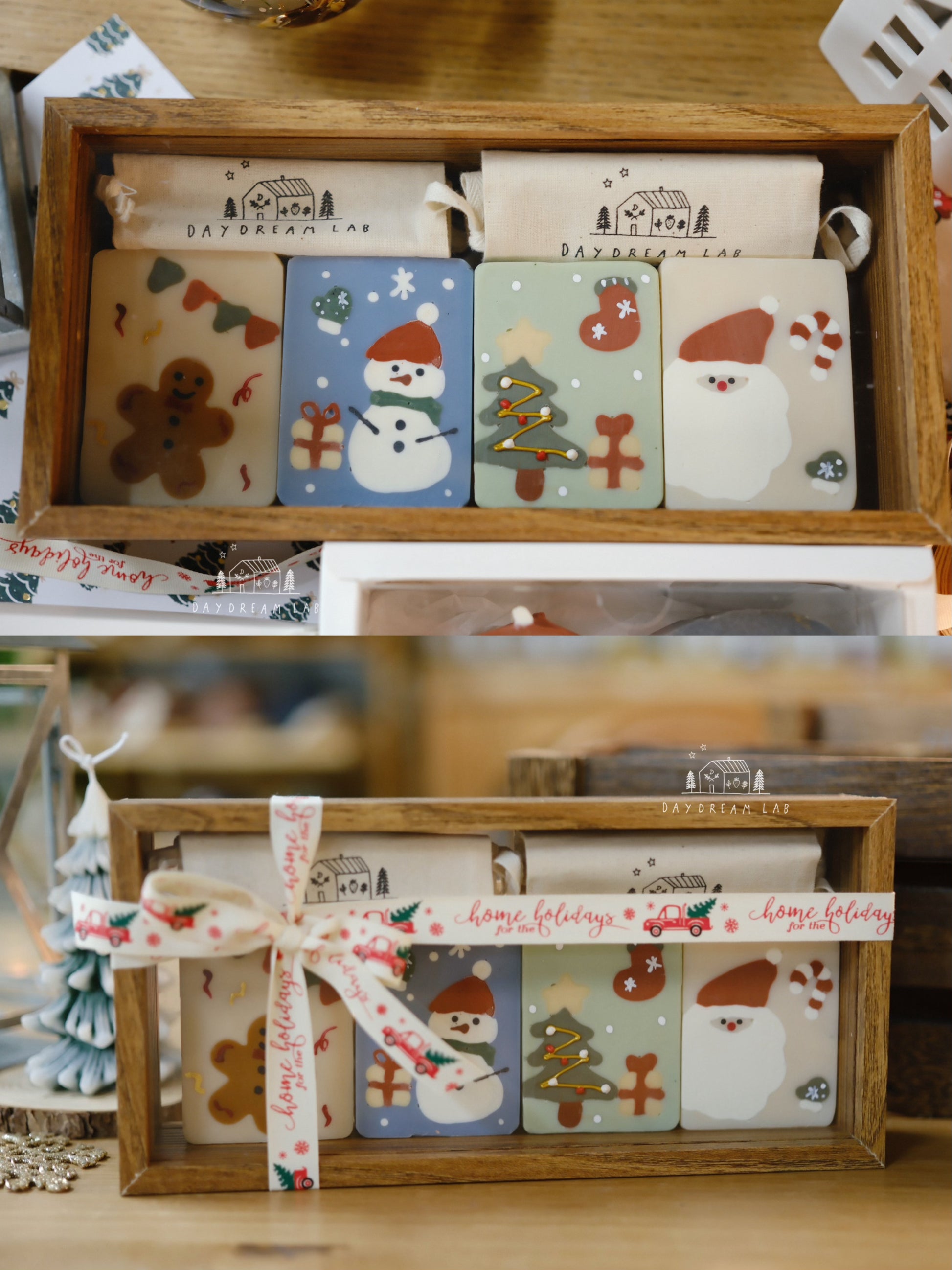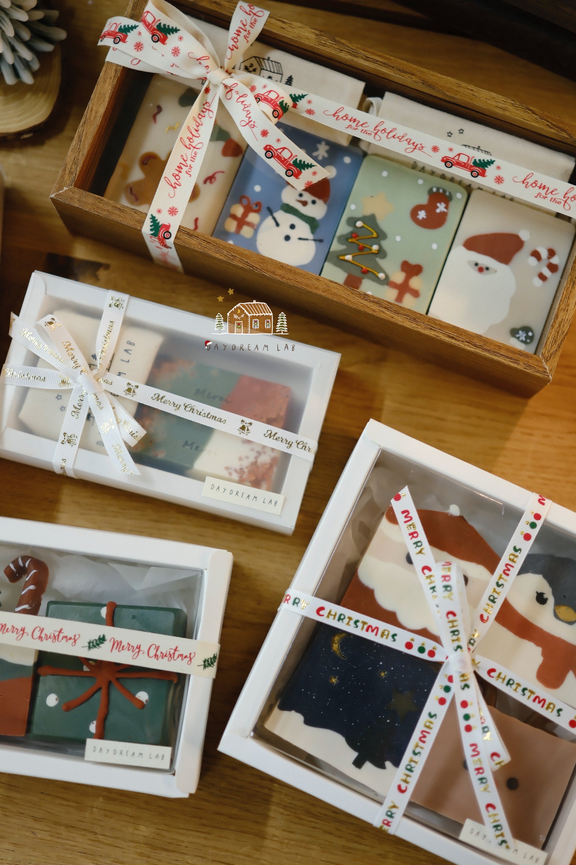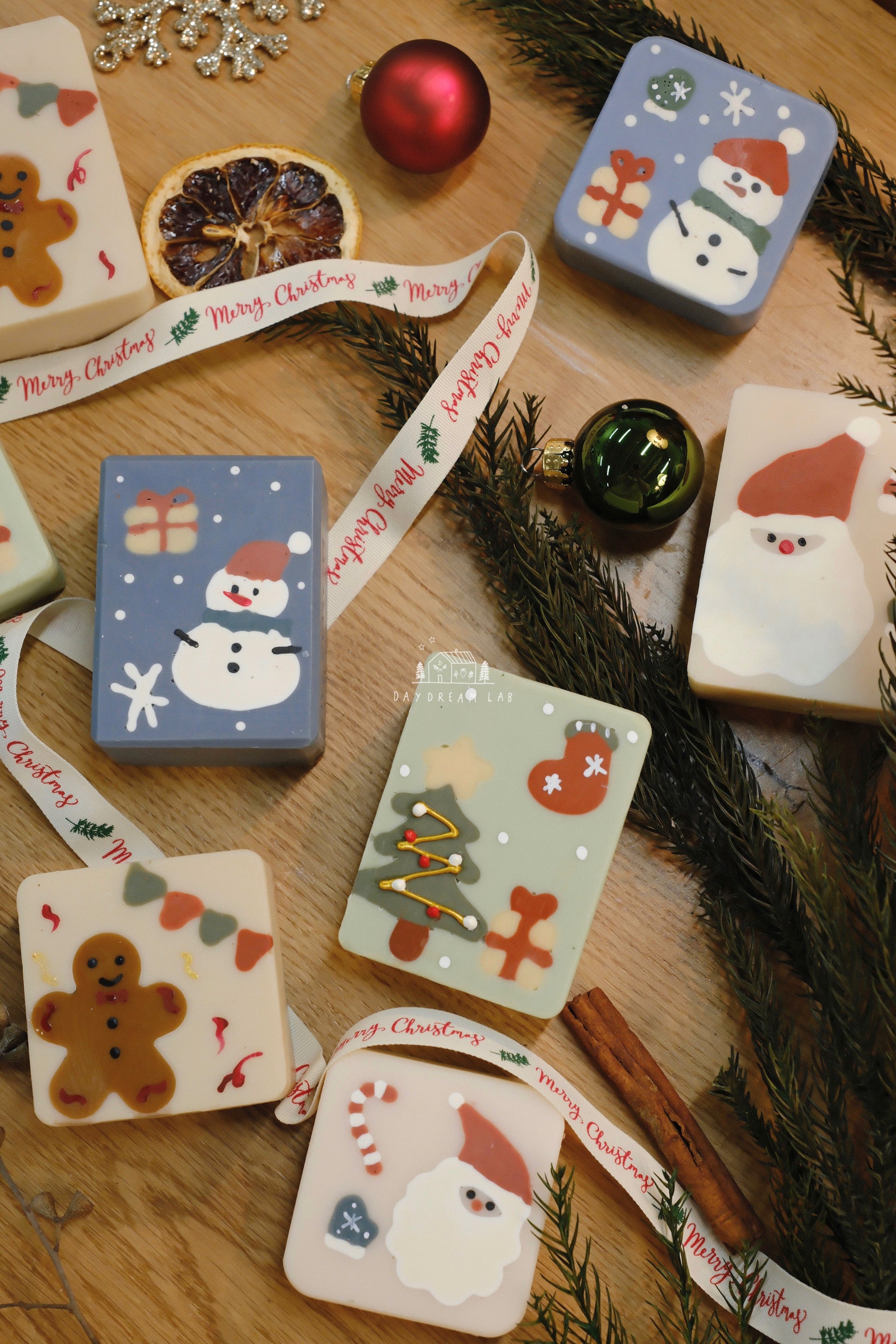 Christmas Cold Process Soap PREMIUM Gift Box - Hand drawn Classic Christmas Soaps (large rectangle one)