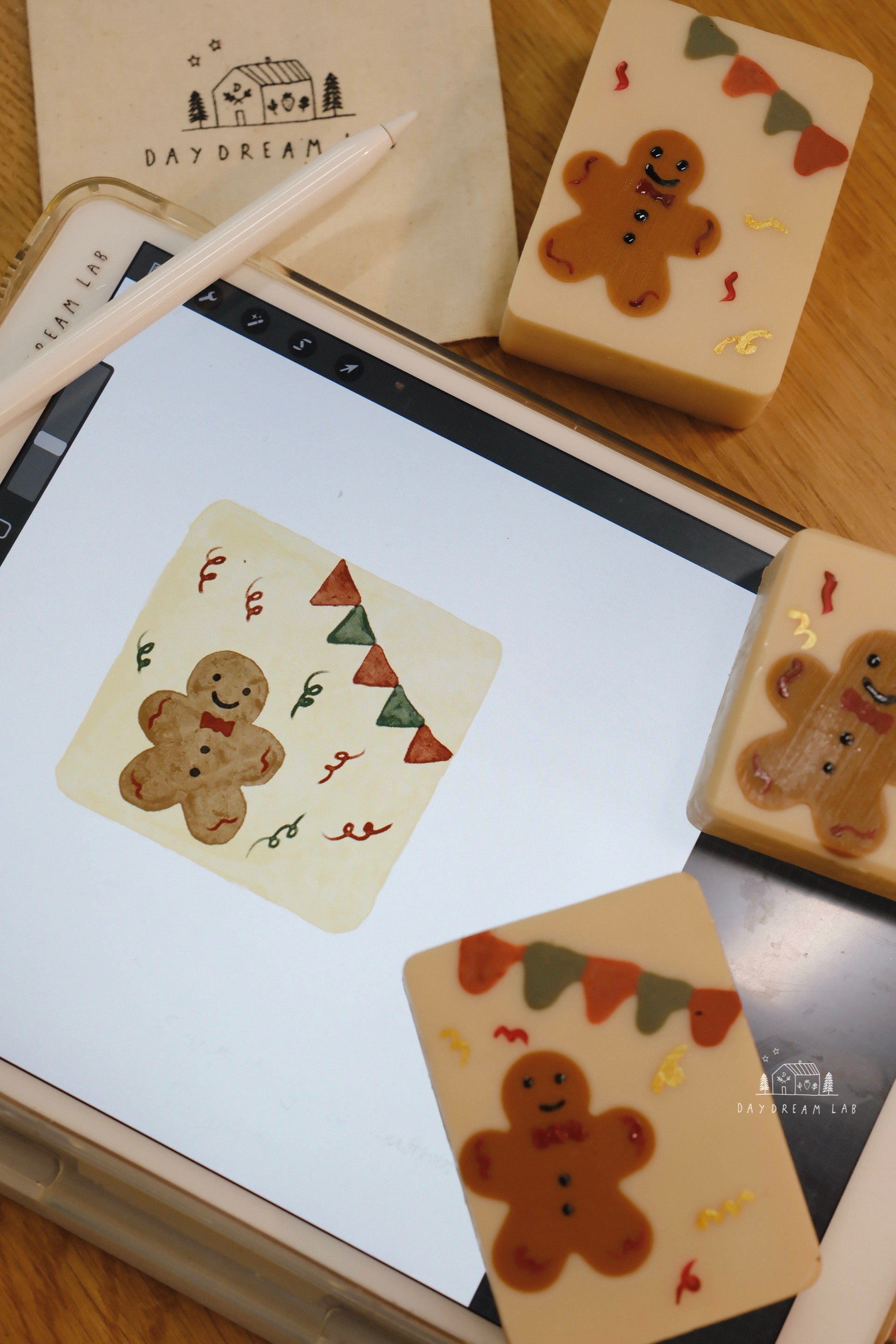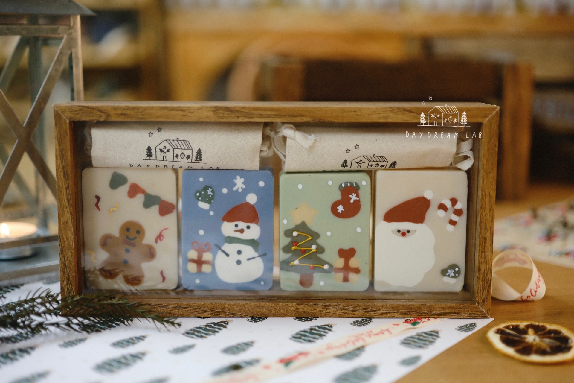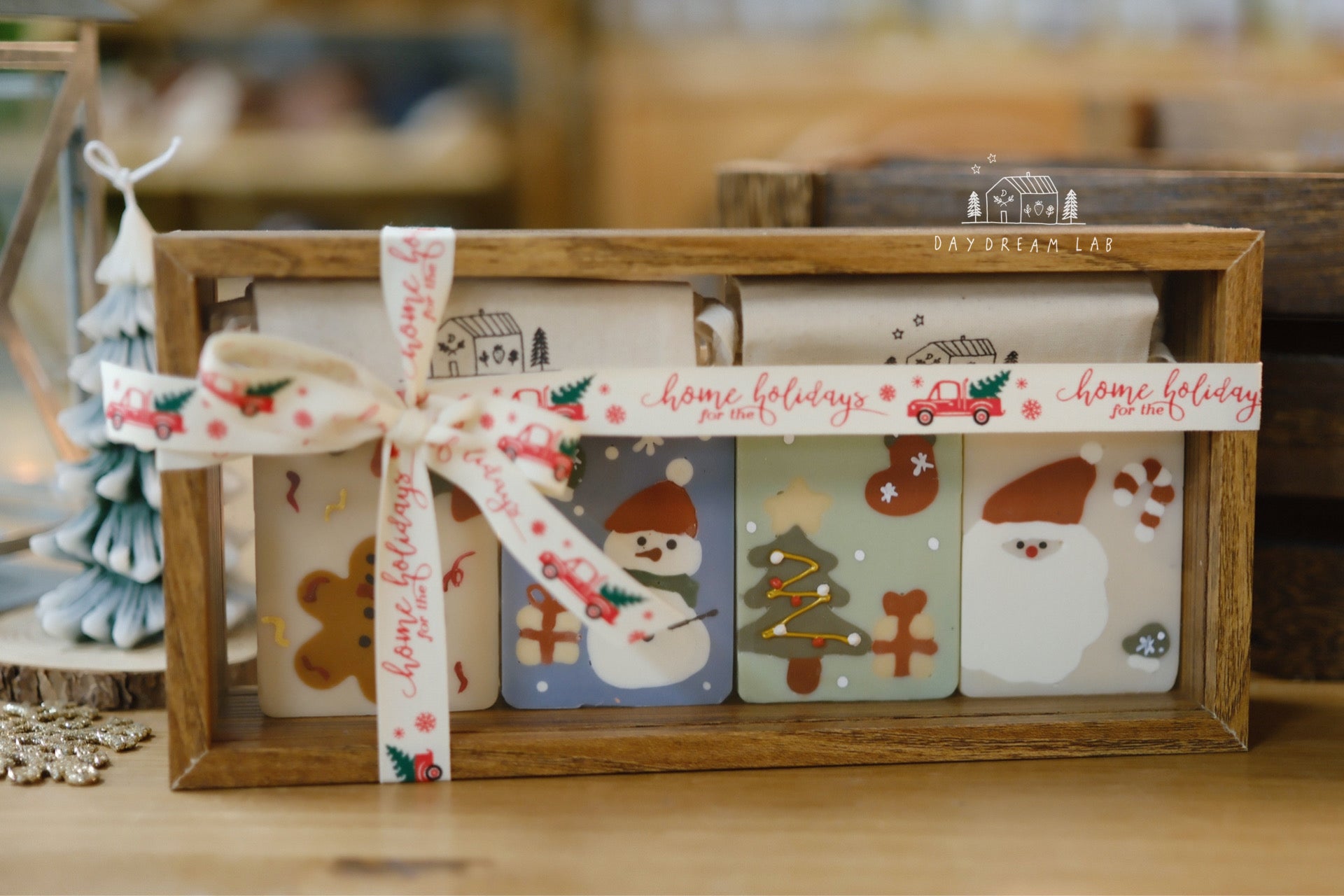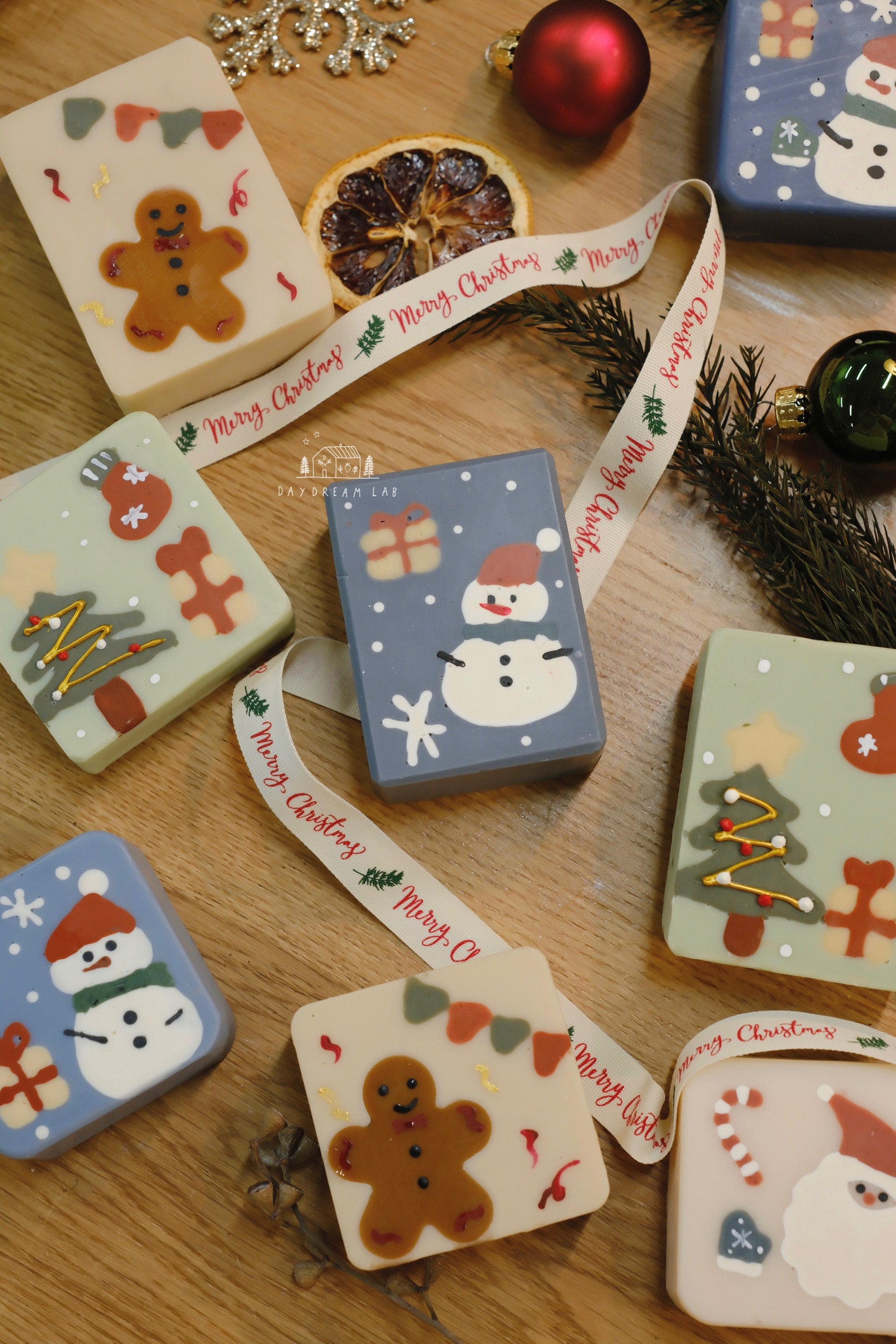 Christmas Cold Process Soap PREMIUM Gift Box - Hand drawn Classic Christmas Soaps (large rectangle one)