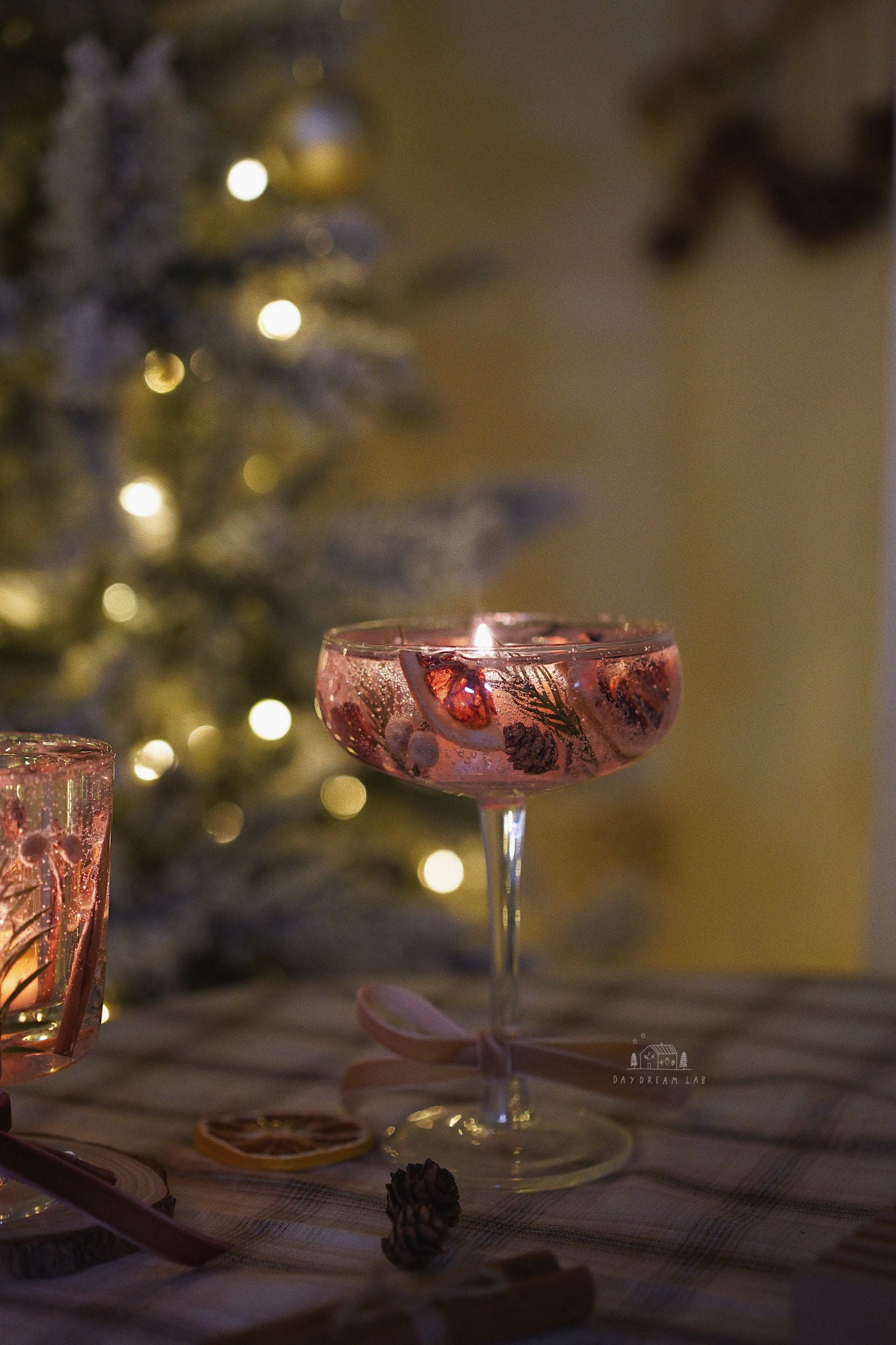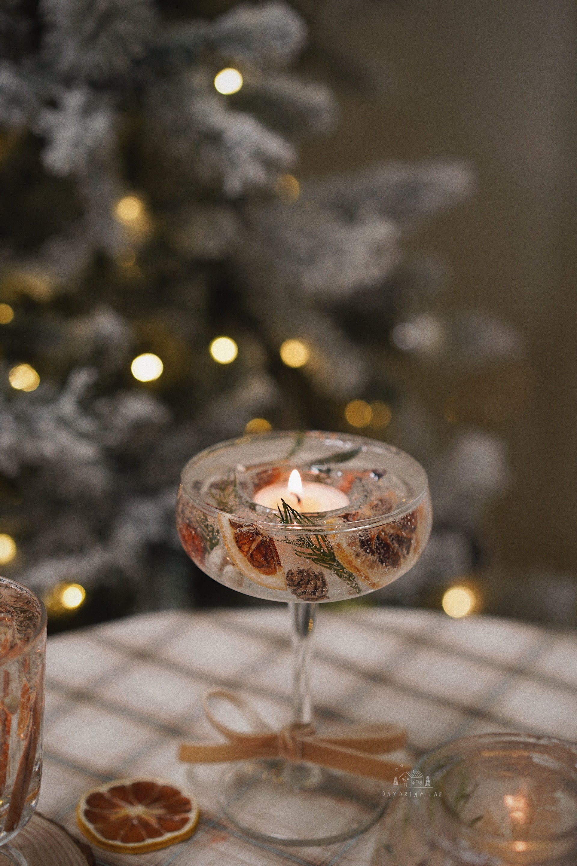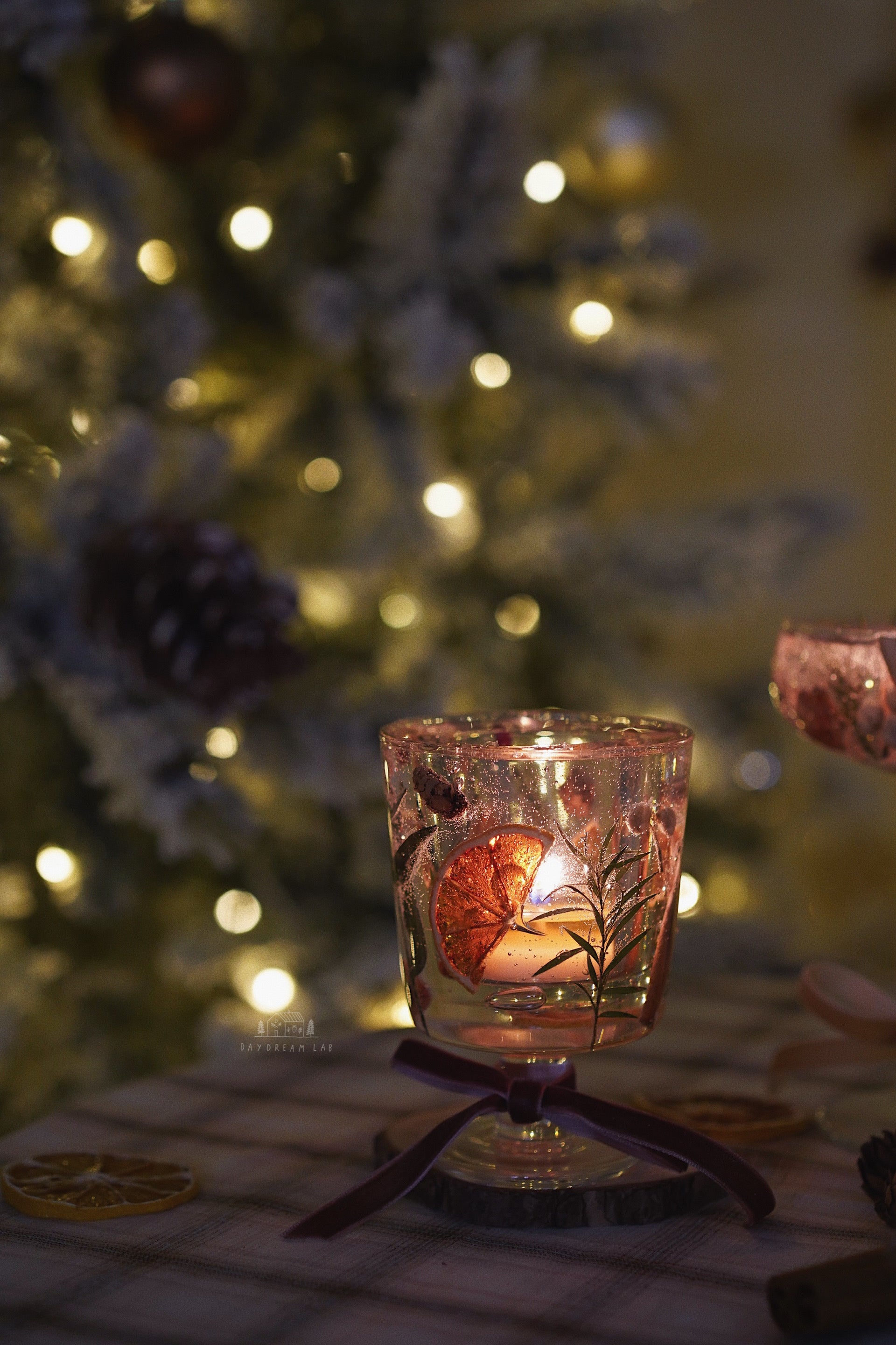 超级有氛围感的透明干花烛杯,可以在杯子内置放茶蜡,点燃后置于室内,带来温馨的感觉。