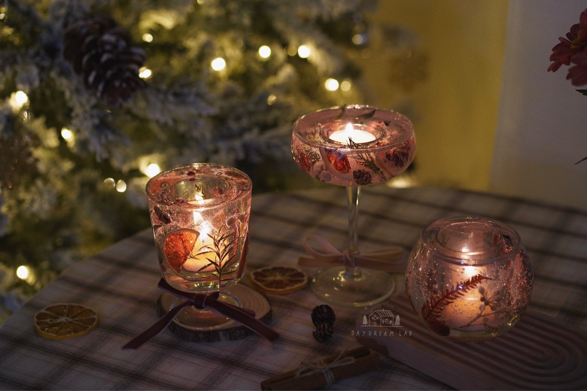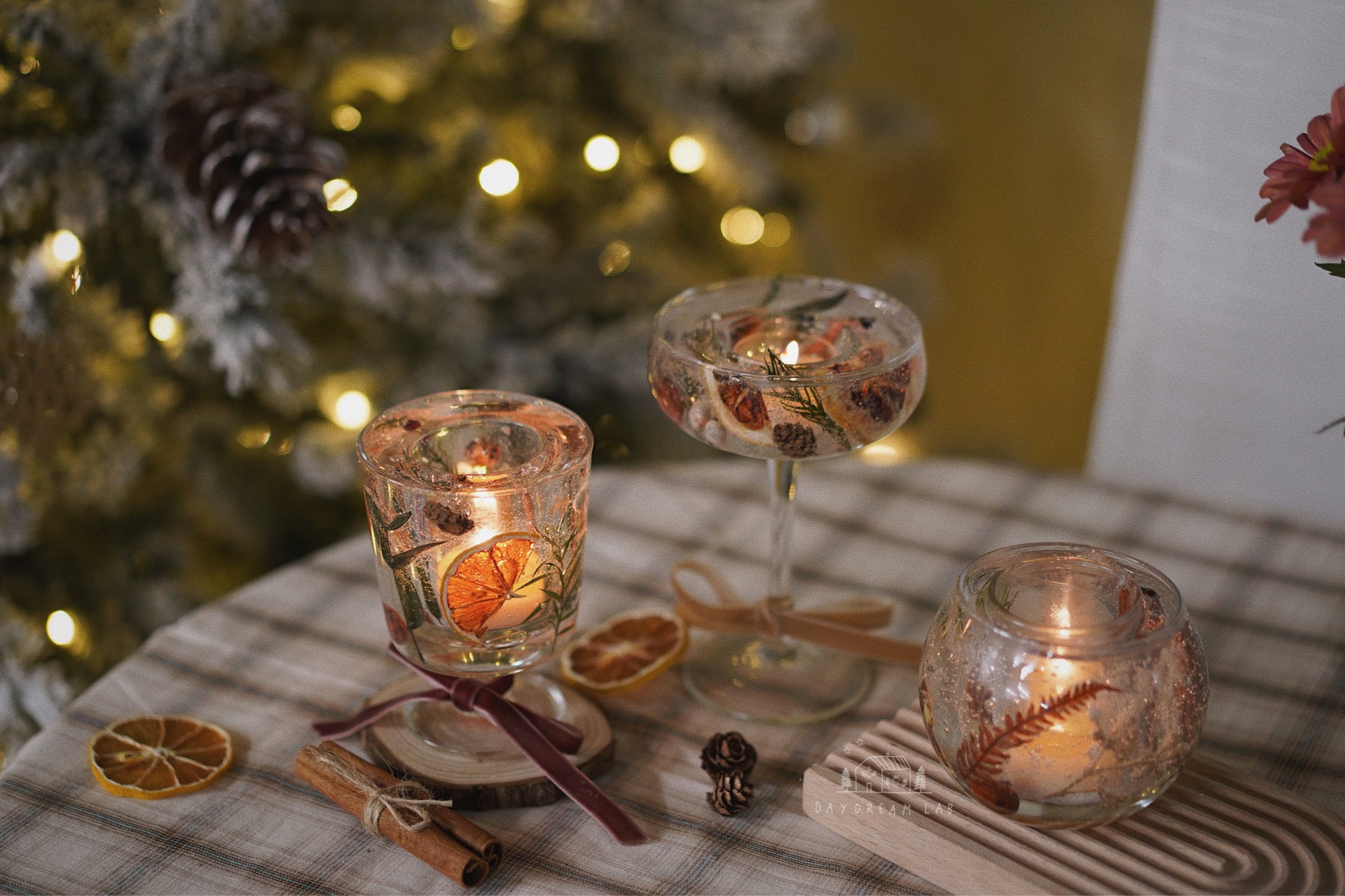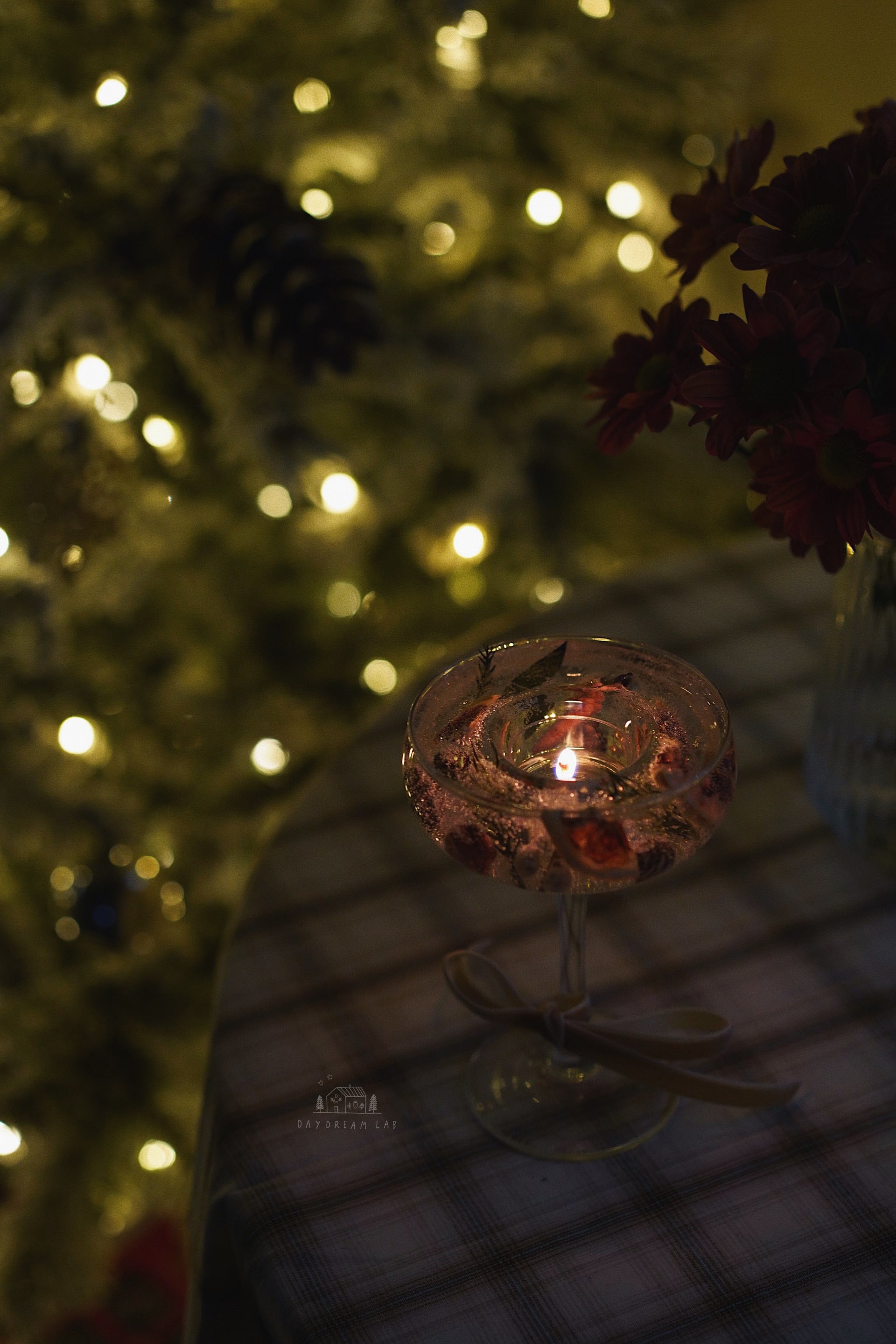 超级有氛围感的透明干花烛杯,可以在杯子内置放茶蜡,点燃后置于室内,带来温馨的感觉。