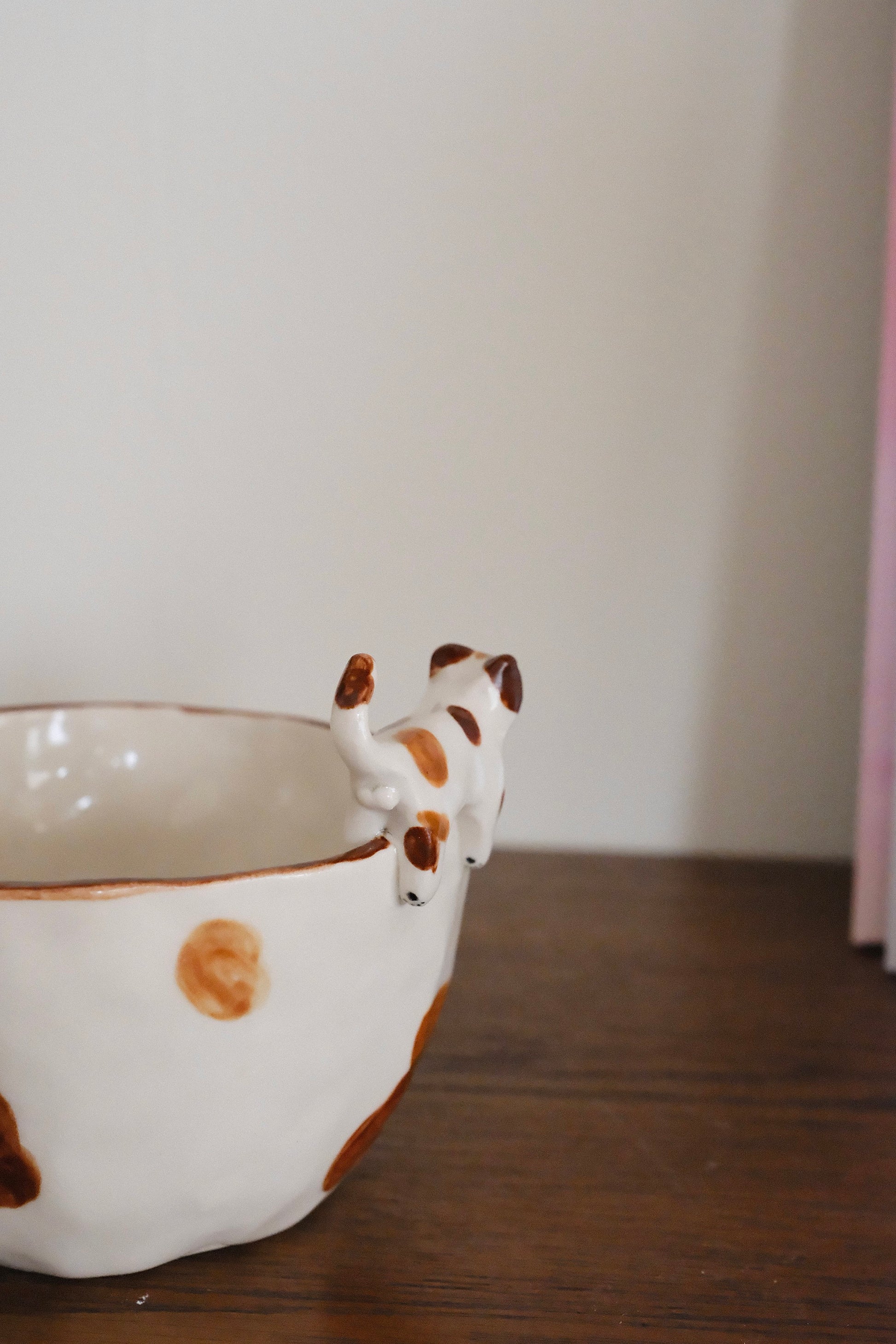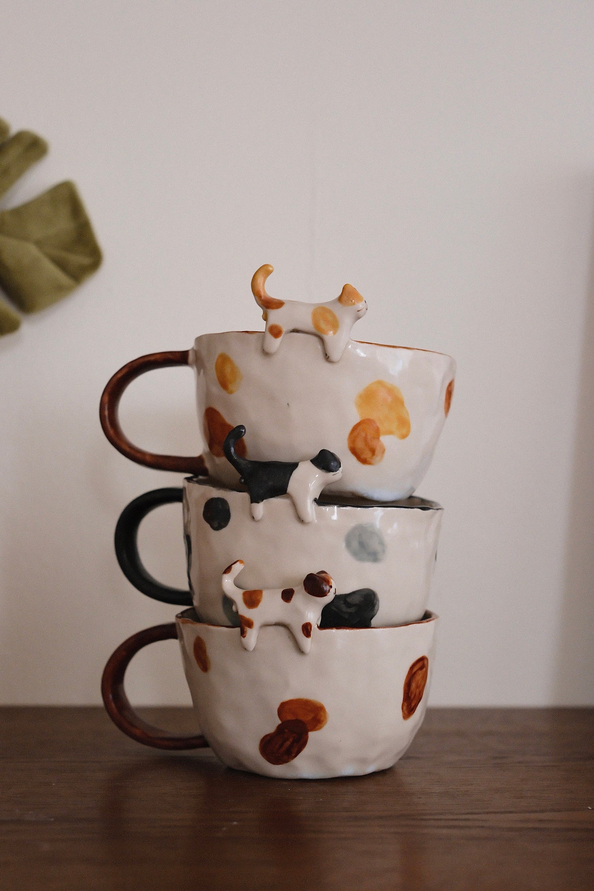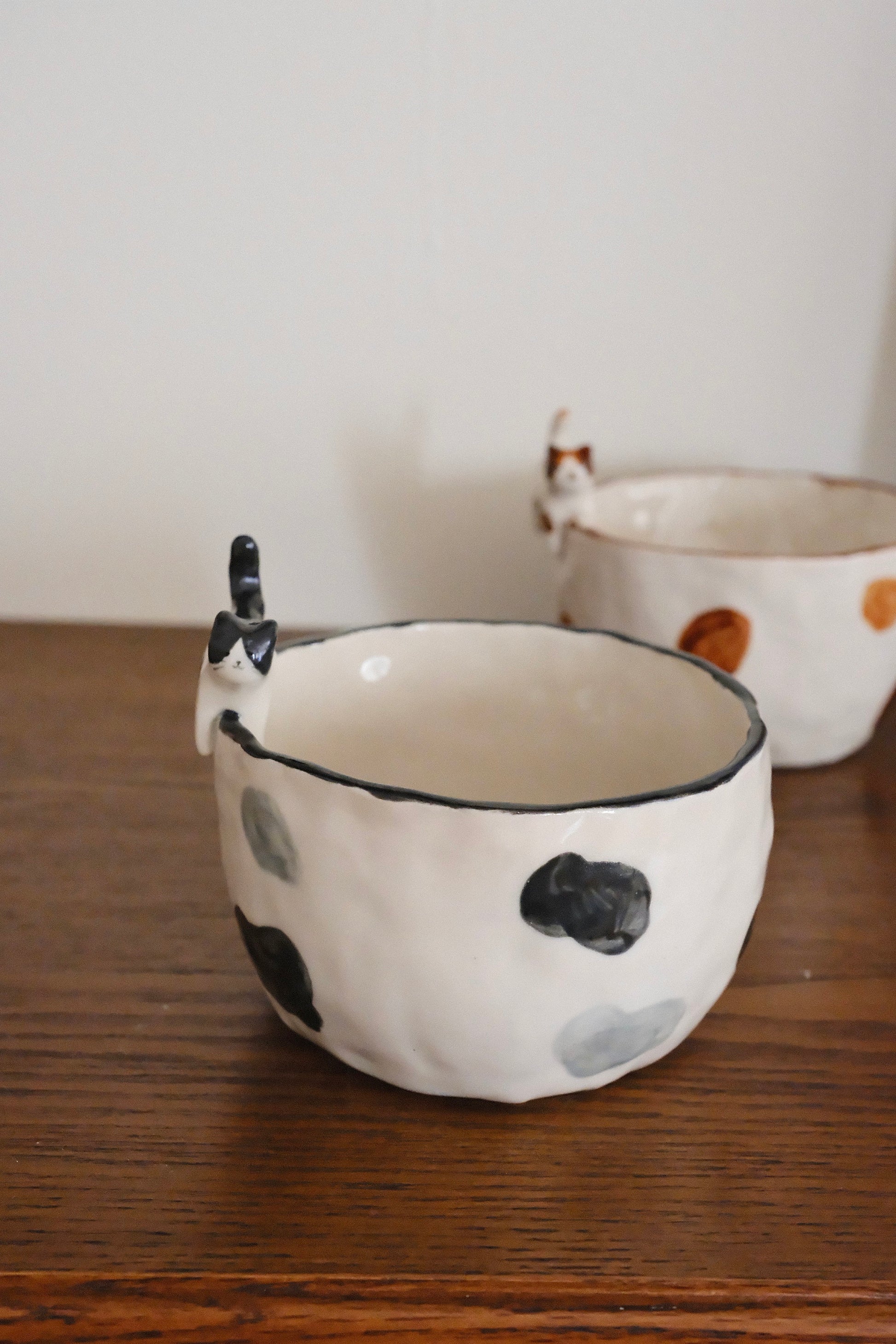 Little Nooks Ceramics | Handcrafted Ceramic Cat Mug with Adorable Cat Perched on Rim - Unique Foot-Soaking Design | Cute Kitten Cup for Coffee or Tea Lovers 小猫泡脚杯