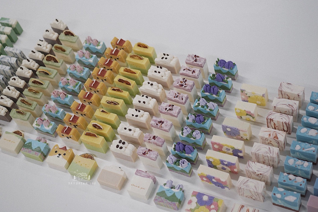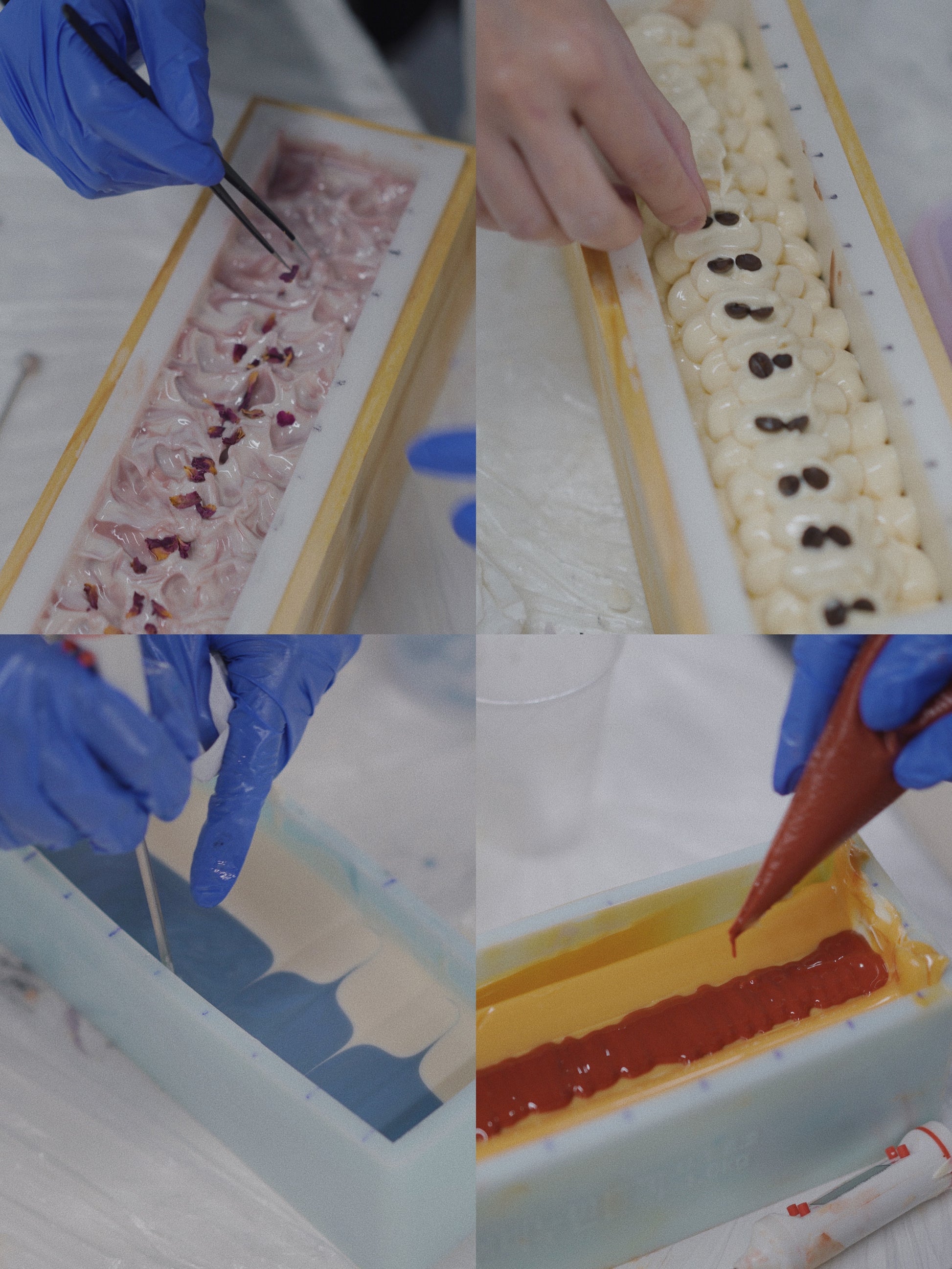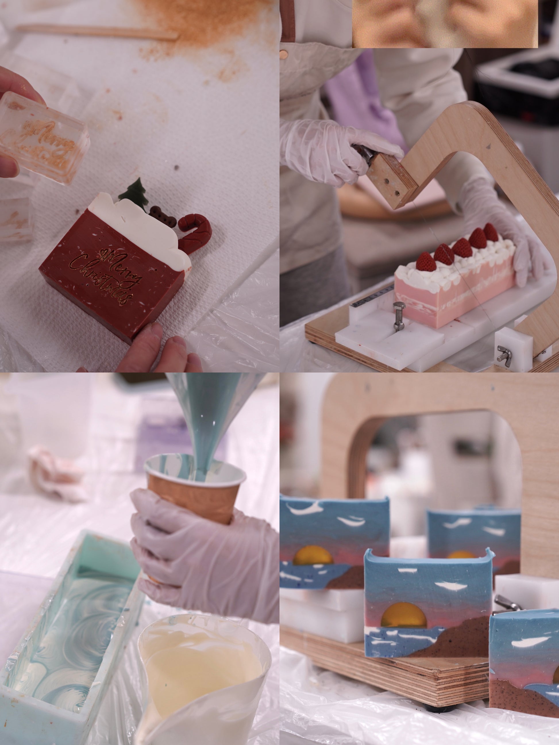 该课程为小班教学,用时4天,将学习手工皂的理论基础知识及多种基础样式的制作方法,共计9款皂,可以带近100块皂回家!